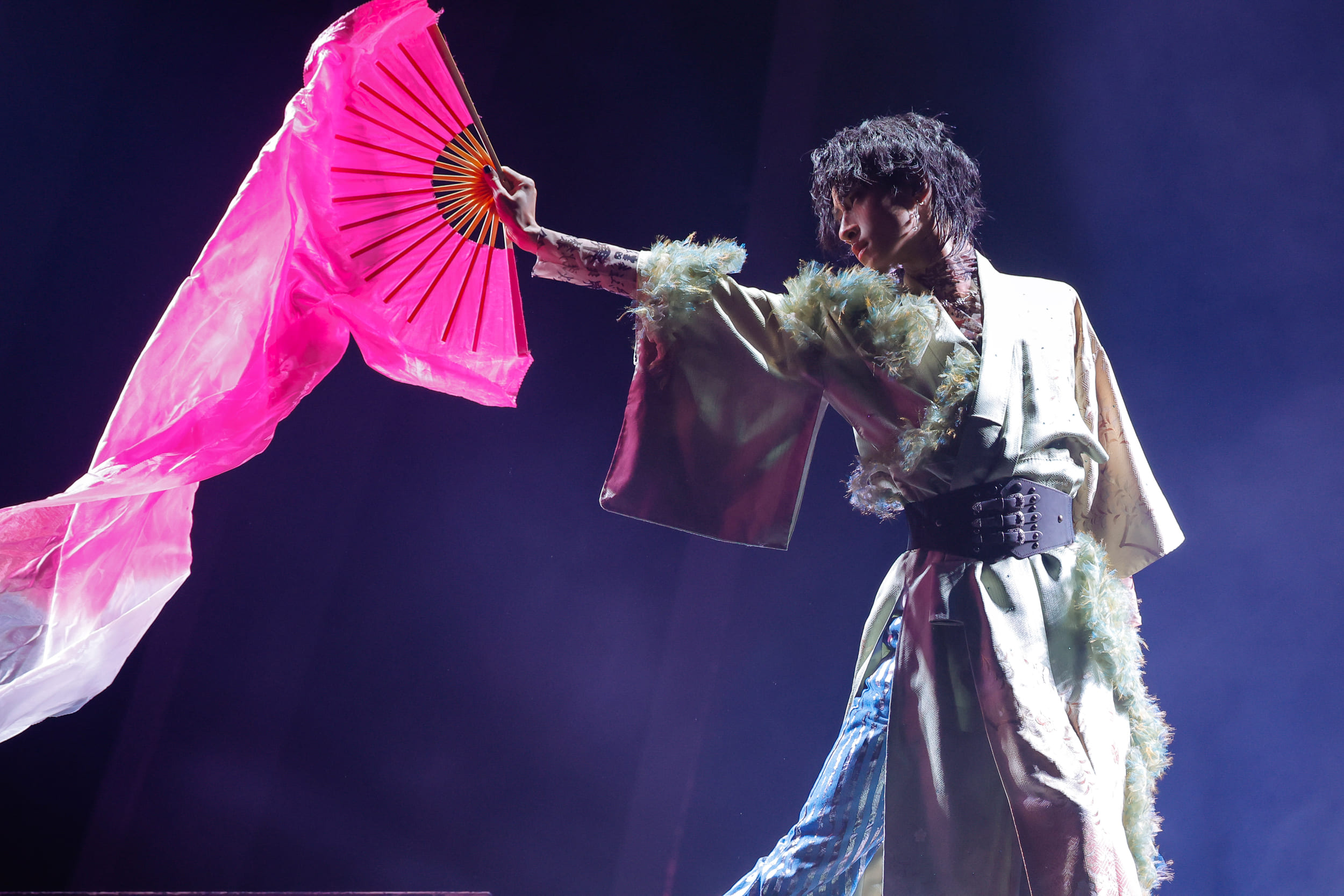DAY-1では、「龍宮城へ、ようこそ」という言葉を合図に『OSHIBAI』からスタート。Rayが「対戦、よろしくお願いします」と言い放ち『SAIGI』『裏島』『あっかんべ』と立て続けに披露し会場を一気に独自の世界観へと連れ込んでいくと、ビジョンには楽曲の世界に入り込んだ彼らの表情が映し出されていく。憑依したかのような彼らの表情は覇気に満ちていて美しさを帯びたかと思えば、時に愛くるしく笑ったりとその表現力は圧倒的だ。